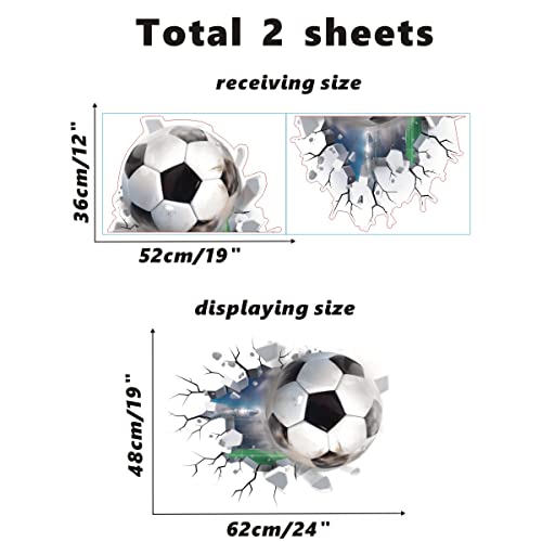 TOARTi Adesivi murali 3D calcio calcio adesivi da parete per camere da letto per ragazzi, calcio calcio vinile decalcomania per adolescenti ragazzi 3D camera da letto accessori