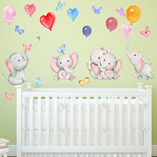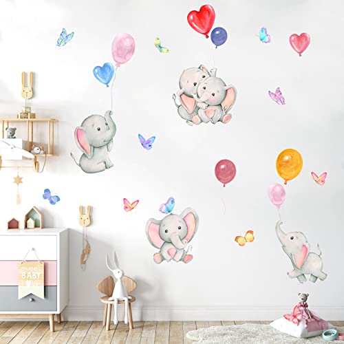 TOARTI Adesivi da Parete Elefante,Adesivi Murali Bambini Ragazza,Palloncino Farfalla Sticker da Muro Bambino,Colore Adesivo da Muro,Animali Decalcomanie per Camera da Letto Asilo Nido Decor Murale
