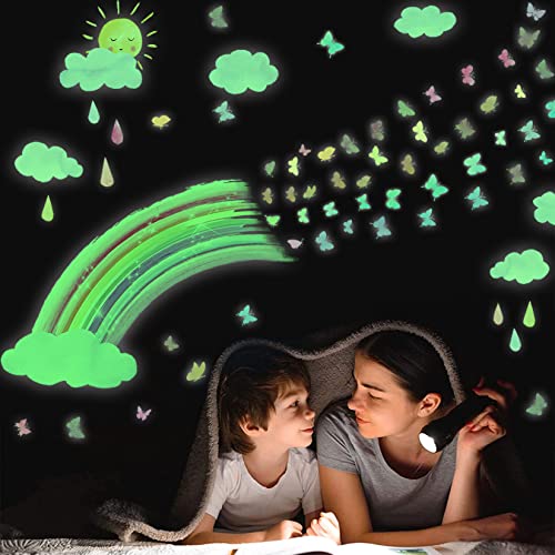 TOARTI Arcobaleno Adesivo Luminoso,Colore Adesivi Murali Bambini Ragazza,Farfalla Adesive Parete Fluorescenti,Arcobaleno Decorazioni Pareti Cameretta Bimba,Stella Luminosi Decalcomanie per Asilo Nido