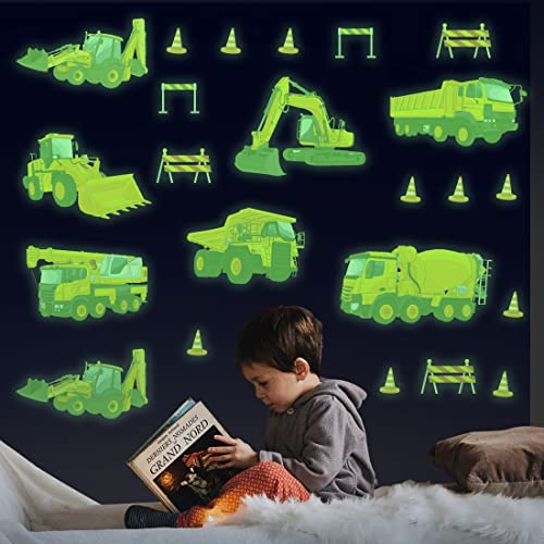 Adesivi da parete per auto a cartone animato: questo adesivo da parete per veicoli contiene diversi motivi di cantiere escavatore, sono colorati e belli di notte, sono perfetti per decorare la cameretta dei bambini, i bambini e gli appassionati di auto saranno felici