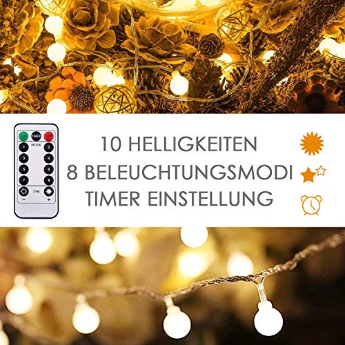 Luci a sfera:Il diametro di ogni lampadina è di 2 cm.La distanza tra 2 lampadine è di 12 cm.Le luci a sfera sono realizzate con LED e involucro di plastica, per garantire una maggiore durata.