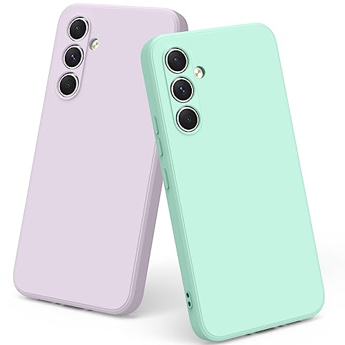 Tobfit【2 Pezzi Custodia per Samsung Galaxy A54 5G Cover, Custodia in Silicone Liquido Ultra Sottile con Fodera in Morbido Panno in Microfibra, Protezione Cover per Samsung Galaxy A54 5G (Viola+Menta)