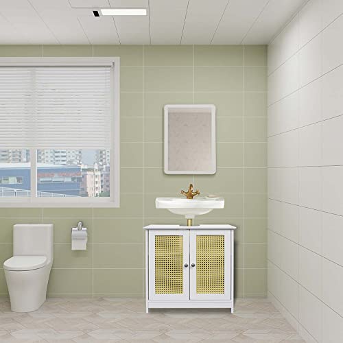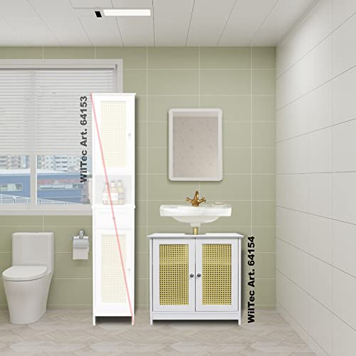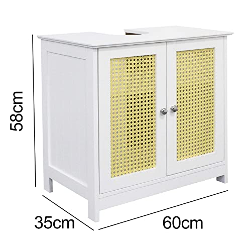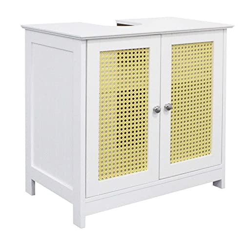 Toboli Mobile sottolavabo bagno, legno bianco, ante a rete stile country Mobiletto per lavandino