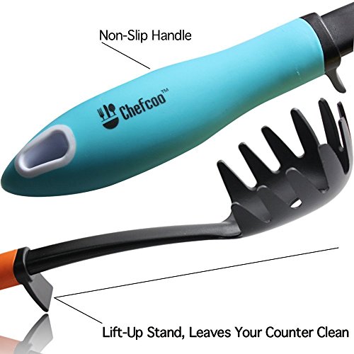 PROTEGGE IL PENTOLE E CONTRO TOP - I nostri utensili da cucina alla moda con la testa di nylon per evitare graffi alla pentole e padelle costosi, a differenza di utensili da cucina del concorrente e gadget, che possono graffiare il vostro cuoco e bakeware, più le maniglie Elevate manterrà il vostro contatore pulito.