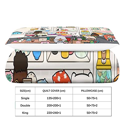 Toca Boca World Set Di Biancheria Da Letto Per Con Stampa 3D, Copripiumino Con Cerniera, Incluso Copripiumino E Federe, Biancheria Da Letto Per Ragazzi E Ragazze Single(135x200cm)