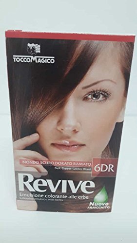 Tocco Magico - Revive Emulsione colorante alle erbe da 60 ml + Maschera di benessere da 15 ml, effetto Biondo scuro dorato ramato 6DR, perfetta copertura dei capelli bianchi, facile applicazione