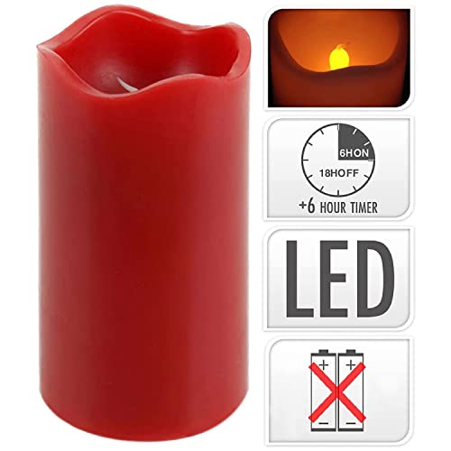 ToCi - Set di 4 candele LED con funzione timer, candele in vera cera senza fiamma, con luce tremolante, diametro 5 x 6,5 cm, colore: rosso