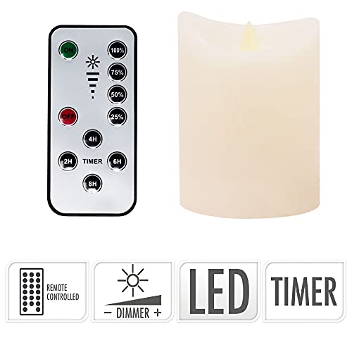 ToCi Set di 4 candele a LED, senza fiamma, in vera cera con timer e telecomando, candele elettriche con dimmer (avorio)