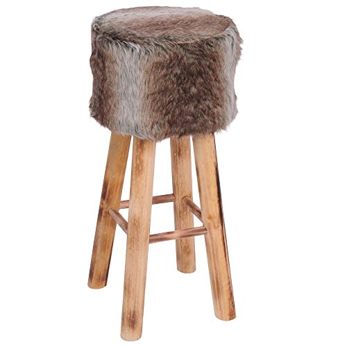 ToCi - Sgabello da Bar in Legno con Rivestimento in Simil Pelliccia | Pelliccia Sgabello con 4 Gambe in Legno Stabile nel Modello Hüttenzauber Style | 70 cm di Altezza | Seduta 30 cm Imbottita