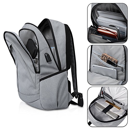 Tocode Zaino per PC Portatile 15.6" Laptop Borsa Backpack Viaggio Scuola con USB Port (Grigio) (Gray)