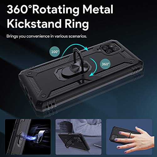 TOCOL Cover Compatibile Samsung Galaxy A12 5G/M12, 2 Pezzi Pellicola Protettiva in Vetro Temperato 2 Pezzi Vetro Fotocamera, Custodia 360°Rotante Anello Magnetica Supporto Grado Militare Case, Nero