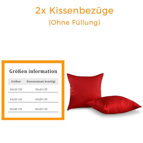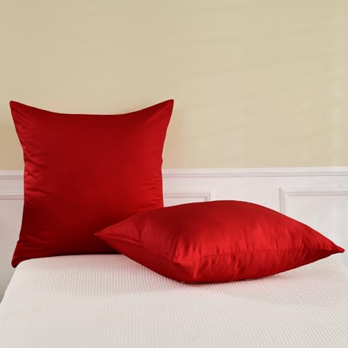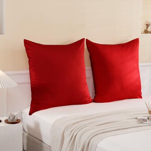 TOCOMOA 80x80 cm Federe Cuscino Letto, Copricuscino Letto Set Di 2, Federe Cuscino Letto Cotone Con Cerniera, Federa Morbida E Traspirante, Cotone Renforcé, Rosso