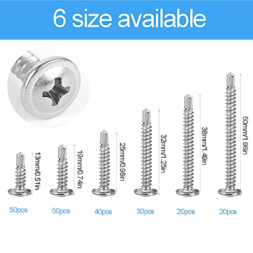 Viti di 6 misure: M4,2 x 13, M4,2 x 19, M4,2 x 25, M4,2 x 32, M4,2 x 38, M4,2 x 50. Quantità per confezione: 210 pezzi. La combinazione di diverse specifiche può darti una scelta più ampia.