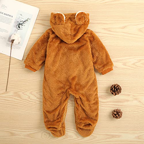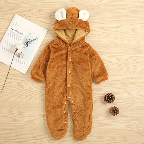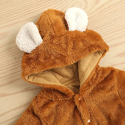 Toddler Baby Boys Girls One-Piece Romper Clothes Felpa con Cappuccio Tuta Cute Bear Ears Tuta Autunno Inverno Vestiti Caldi Marrone 80 3-6 Mesi
