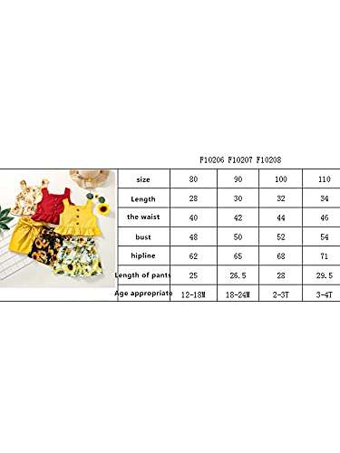Toddler Baby Girl Summer Clothes Ruffle Sleeveless Sunflower Print Tops Shorts Summer 2Pcs Casual Outfits Sets (Yellow, 12-18 Months)