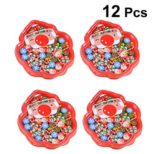 Toddmomy 12 Scatole di Natale Matita del Fumetto Divertente Eraser Gomme Mini Gomme da Cancellare per I Bambini Grandi Regali di Natale