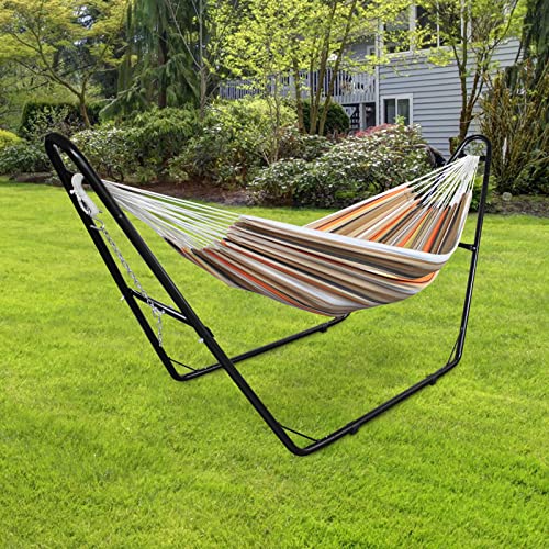 Todeco Amaca da Giardino con Supporto, Amaca da Giardino 2 Posti Regolabile, Struttura Amaca con Borsa, Portata 200 kg Ideale per Campeggio e Spiaggia (Beige/Marrone/Arancio)