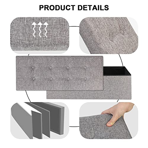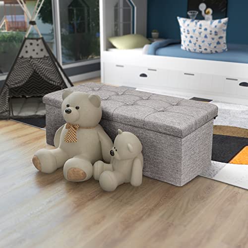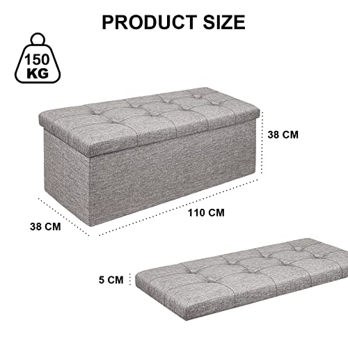 Todeco - Poggiapiedi, Ottomana Pieghevole - Materiale: Tessuto Non Intrecciato - Carico Massimo: 150 kg - Tessuto Finitura Trapuntata, 110 x 38 x 38 cm, Grigio