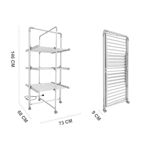 Possibilità di riscaldare e asciugare i vestiti in modo efficiente, anche durante le giornate piovose o umide * Oltre ad asciugare i panni, questo scaffale permette di riscaldare cappotti e giacche durante un freddo inverno * Il portabiancheria si ripiega facilmente e permette di occupare poco spazio
