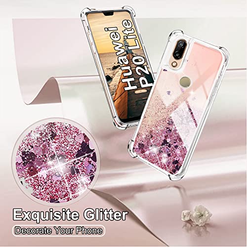 ToDo eu Custodia con Cordino per Huawei P20 Lite Custodia Trasparente Liquid Quicksand - Case con Collana Practical Stylish Glitter Bling Liquido TPU Custodie Bumper Antiscivolo Case