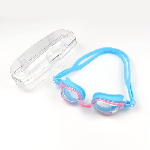 TODREMOU Occhialini nuoto bambini 4 ai 12 anni, adatti per lezioni di nuoto, con custodia per occhiali (Blu & Rosa)