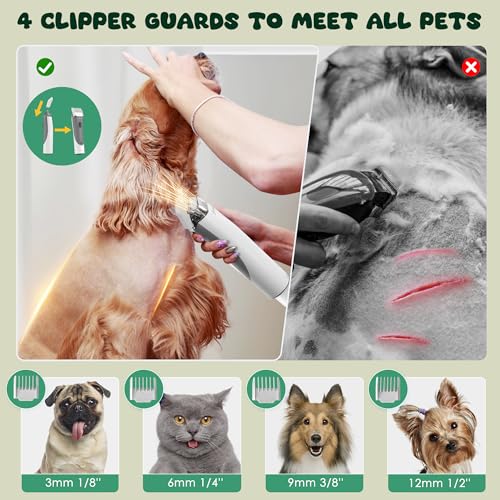 【Design a basso rumore di 52 decibel, costruisci fiducia per gli animali domestici】Il rumore dell'aspirapolvere per animali domestici è inferiore a 52 decibel, quindi è meno probabile spaventare gli animali domestici. Prima di iniziare a tagliare, puoi usare il toelettatore per accarezzare delicatamente il tuo animale domestico per creare fiducia.