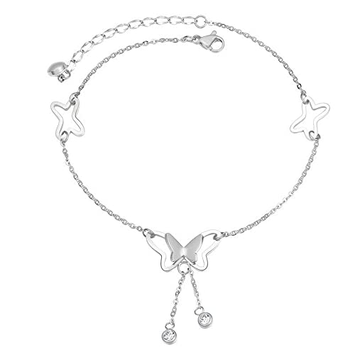 TOFBS Cavigliera Farfalla per Donna e Ragazze 18K Placcato Argento/Oro & 316L Acciaio Inossidabile Regolabile Spiaggia Cavigliera Catena del Piede (Argento)