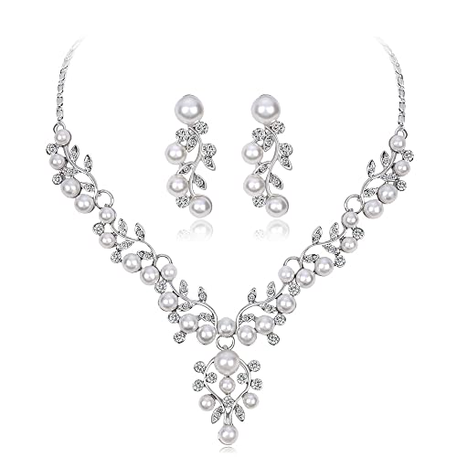 TOFBS Parure Gioielli Sposa Perle Parure Gioielli per Donna Ragazza Collana e Orecchini Set Collana di Perle Gioielli Sposa Set Matrimonio Fidanzamento Ballo Studentesco Festa (#2)