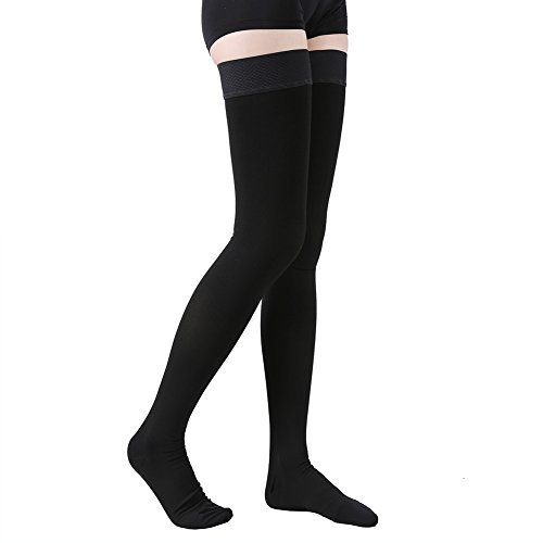 TOFLY Calze a Compressione Autoreggenti, Opache, Classe II da 20-30 mmHg Compressione Graduato con Banda in Silicone, Calzini per Compressione Unisex, Migliore Circolazione, 1 Paio Nero L