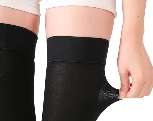 TOFLY Calze a Compressione Autoreggenti, Opache, a Punta Aperta, Classe II da 20-30 mmHg Compressione Graduato con Banda in Silicone, Calzini per Compressione Unisex, Migliore, 1 Paio Nero M