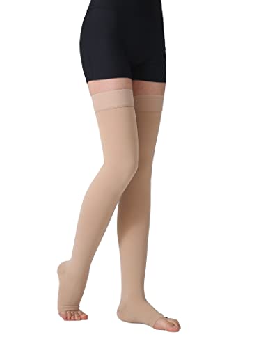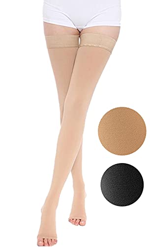 TOFLY Calze a Compressione Autoreggenti, Opache, a Punta Aperta, Classe II da 20-30 mmHg Compressione Graduato con Banda in Silicone, Calzini per Compressione Unisex, Migliore,1 Paio Beige M
