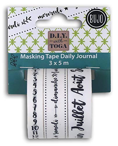 Toga Bullet Diario Trio Masking Tape, Washi, Data Bujo-Nero/Bianco, Lunghezza: 5 metri
