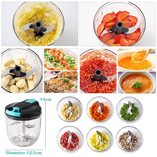 Tohoee 900ml Tritaverdure da Cucina Manuale con Mixer e 5 Lame Grande Capacità Tritatutto Taglia Cipolle per Verdure, Frutta, Cipolle, Noci, Aglio Piccoli Elettrodomestici da Cucina (Blue)