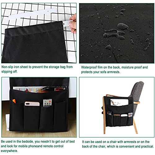 Tohoee Divani Organizzatore Bracciolo Telecomando Portaoggetti Antiscivolo Pieghevole Tasca con 5 Tasche 1 Borsa per Telefoni Libri Riviste Comodino Organizer - Aggiornato Grandi Ispessimento (Nero)