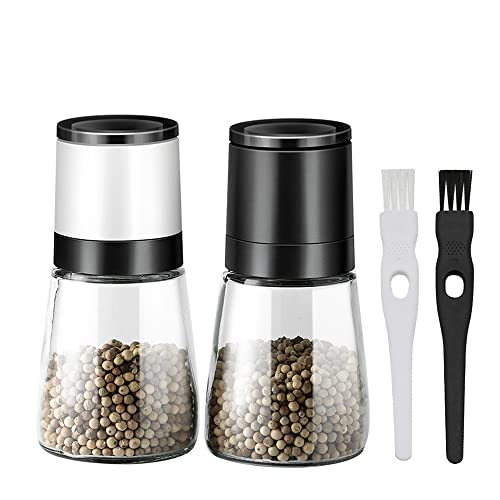 Tohoee 2 Pezzi Macina Pepe Macina Sale e Pepe Manuale Grinder Regolabile in Ceramica Vetro Trasparente di Alta Qualità Saliera con 2 Pezzi Spazzola di pulizia per Spezie Peperoncino Cucina Famiglia