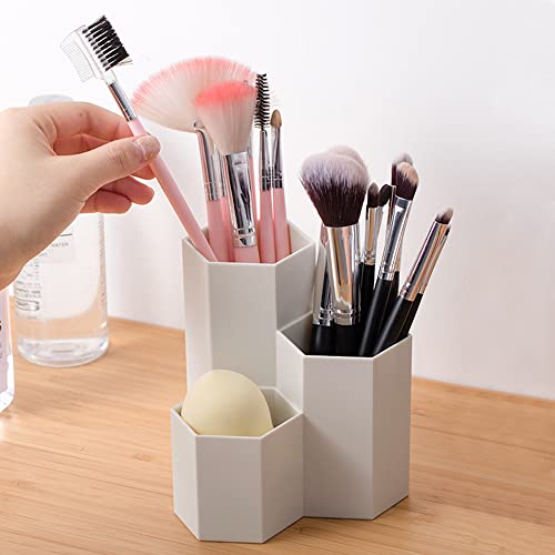 Tohoee 2 Pezzi Porta Pennelli Make Up Organizer Portapenne Esagonale Multifunzione Portapenne In Plastica per Pennelli da Trucco Ufficio Penne Scrivania Matite Cancelleria (Bianco)