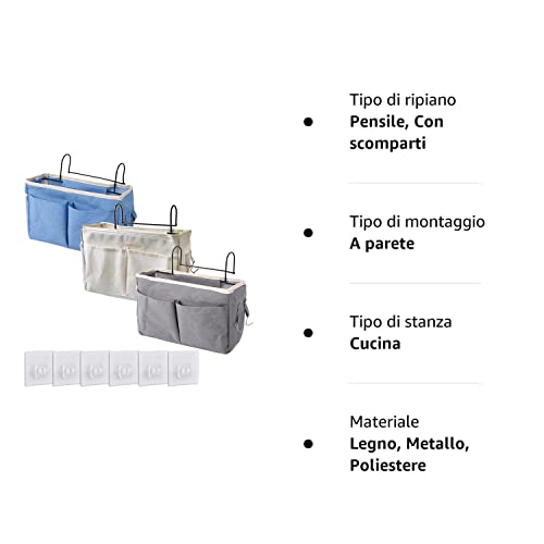 Tohoee 3 Pezzi Tasche da Letto Appendibile, Portaoggetti Letto Organizer per Comodino Comodini Camera da Letto Sospeso Porta Riviste Appeso per casa,Ufficio,Scuola,Dormitorio,Letto a Castello