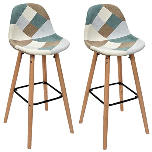 Toilinux.com Set di 2 sgabelli da bar Patchwork, colore: Blu chiaro e Bianco