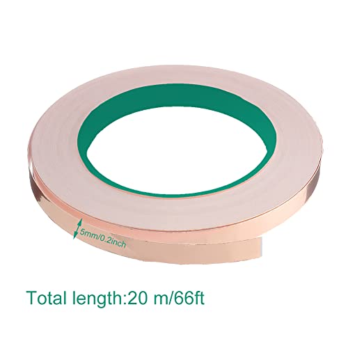 Tokaneit lamina di Rame Conduttiva,Nastro in Rame,Lamina Rame Nastro con Doppio Adesivo Conduttivo, per Schermatura EMI,Riparazioni Elettriche, Messa a Terra, Repellente per Lumache 5mm*20M