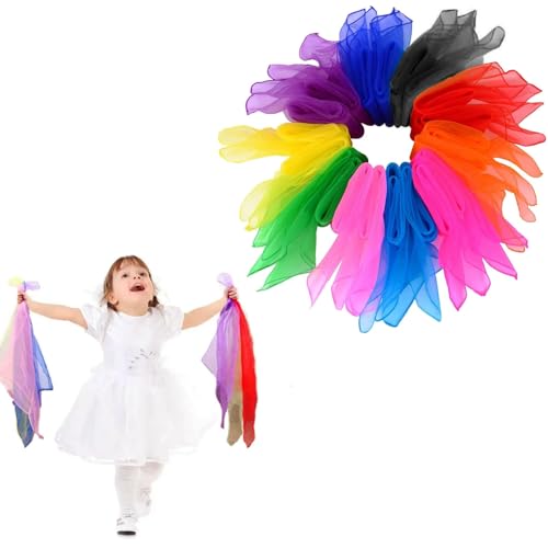 Tokaneit 12 Pezzi Foulard Colorati Giocoleria,Panni da Giocoleria,Foulard Danza Bambini, 45 x 45cm Sciarpa Giocoleria Colorati Set per Bambini Adulti Donna Spettacolo Magico