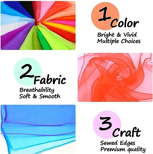 Ampia applicazione: Con i panni in chiffon colorati puoi dare libero sfogo alla tua immaginazione senza limiti. Adatto per asili, gruppi di danza, spettacoli di magia, giocoleria, musical ecc. Questo è un buon regalo per i bambini. Anche per fai da te, Peek-a-Boo, travestimento e riempire sacchetti regalo. Ad esempio, riteniamo che sia una buona idea decorare la tua borsa con un panno di chiffon.
