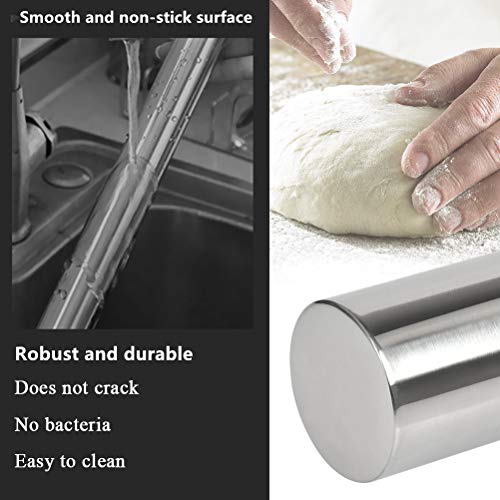 【Materiale di alta qualità】 - Mattarello lungo in acciaio inossidabile di qualità, robusto e resistente, sicuro, incapace di assorbire qualsiasi odore, liscio e non poroso, antiaderente, lungo tempo di servizio.