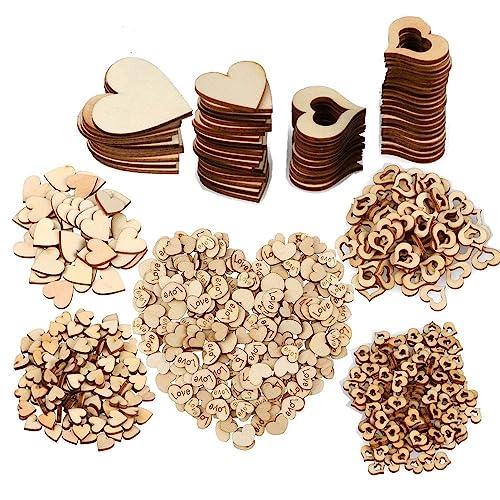 TOKERD 500pz Cuoricini in Legno per Decorazioni Cuore di Decoupage Legno Naturale Cuore in Legno per Matrimonio Natale Tavolo Scrapbooking Fai da Te Artigianato (10mm+20mm+30mm+40mm)