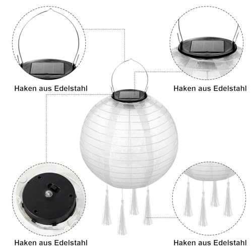 Lanterne impermeabile alle intemperie: Lanterna Solare è realizzata in tessuto di nylon impermeabile a IP55 con una buona impermeabilità. Lanterna giardino Appendere con 4 nappe ha un buon effetto decorativo e può essere Appendere sia Interno ed Esterno.