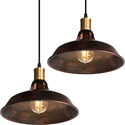 TOKIUS Lampada a Sospensione Industriale Vintage Lampadario Plafoniera E27 in Metallo Ø27cm Lampada da soffitto Retro Interni Per Cucina Camera da letto Sala Da Pranzo (Arrugginito, 2 pezzi)