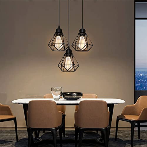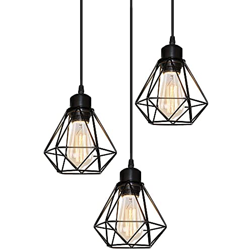 TOKIUS Lampade da soffitto design di gabbia di ferro nero Ø 16 cm vintage lampada pendente illuminazione da soffitto per corridoi cucina camera da letto (pendente 3 luci A)