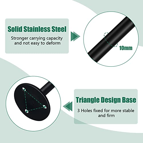Struttura forte e solida: staffe per aste per tende da soffitto realizzate in acciaio inossidabile resistente, asta di supporto spessa 10 mm più 3 fori base fissa, collegate come un triangolo lo rendono più stabile e più forte per sostenere facilmente 10,4 kg di peso. Superficie di supporto per asta per tende spruzzata con elegante vernice nera antiruggine, funziona bene per interni ed esterni.