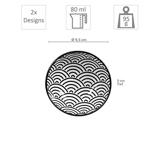 TOKYO design studio Nippon Black Sushi-Set Bianco-Nero, 6 Pezzi, 2X Piatti Sushi, 2X Ciotole per Salsa, 2X Bacchette, Porcellana Asiatica, Design Giapponese, Confezione Regalo Inclusa.