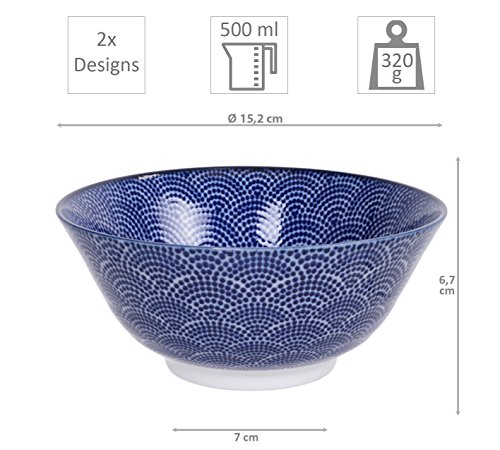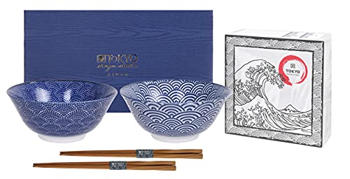 Tokyo Design Studio, Nippon Blue, Set di 2 Coppette e 2 bacchette, 4 PZ, Ø 15.2 cm, in porcellana dal Giappone
