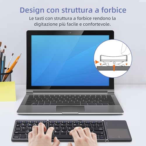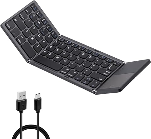 Tolesum Clavier Bluetooth Pieghevole con Clavier Tactile senza Fil Touchpad per Tablet/Telefono Portatile/Pc/iOS/Android(US LAYOUT) - Grigio